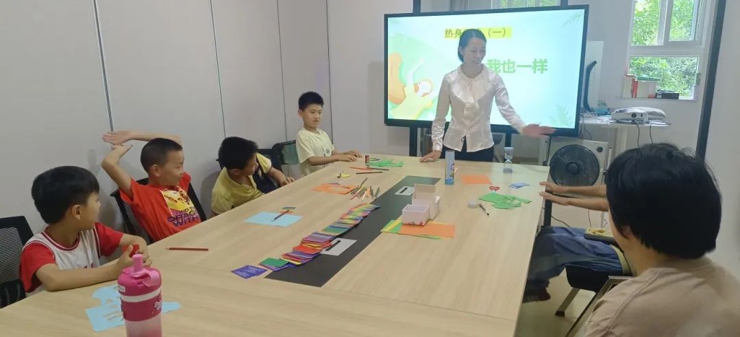 活动伊始,张水晶老师以破冰游戏“我也一样”开启沙龙。孩子们在游戏中,通过观察、交流,逐渐发现彼此之间存在的有形的相同和不同之处,游戏升级之后,孩子们又发现了很多无形的相同和不同之处。通过这个热身游戏不仅快速拉近了彼此的距离,现场氛围变得轻松愉悦起来,也增加了成员之间的相互了解。