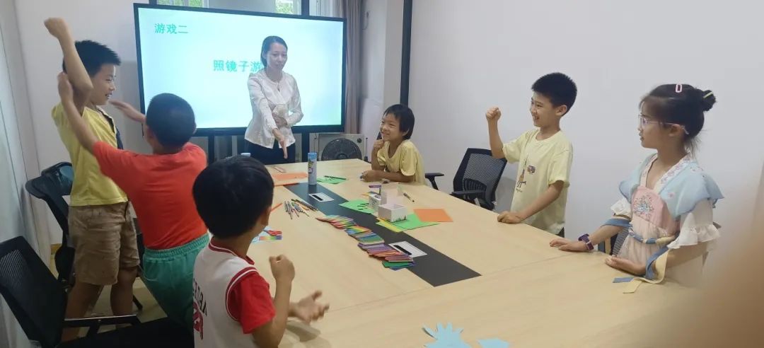 在探讨环节,张水晶老师鼓励孩子们要多发挥自己的长处。通过现场的每个游戏,引导孩子们发现自己和对方的闪光点,树立自信心。