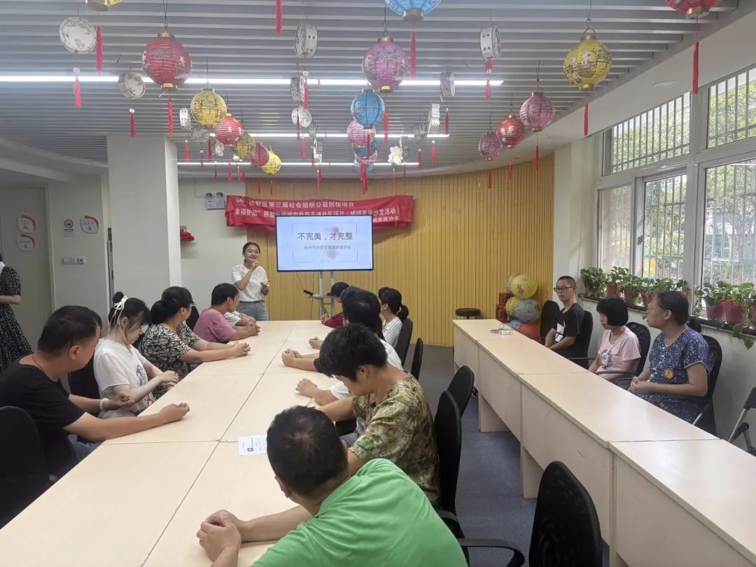 7月25日,由“幸福护航”拱墅区婚姻家庭服务进社区项目支持的《接纳自我—不完美才完整》主题心理沙龙活动在石桥街道残疾人之家举行。由国家二级心理咨询师项丹红老师带领。